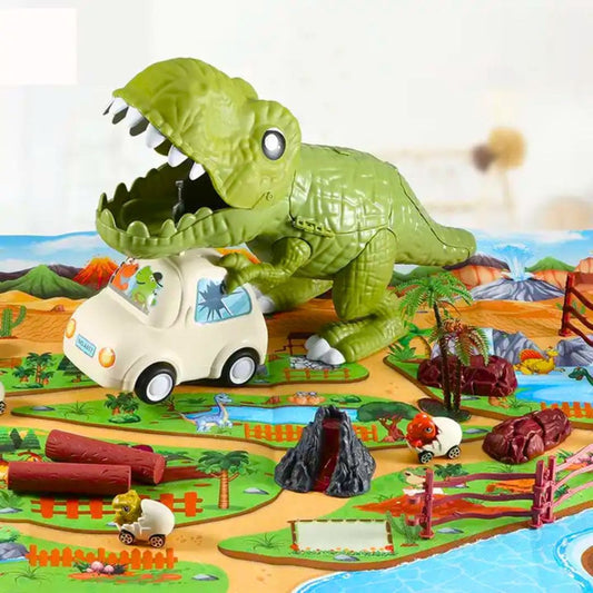 DINOCARS 2 en 1: 🌴 Dinosaurios + Pista de carreras en la Jungla 🦖🚗🌴